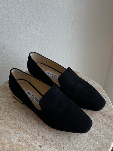 Jimmy Choo - Suede Loafers - Black w gold heel - 39 - new w box