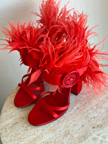 Prada - Feather Block Heels - Red - 39 -RRP$1800