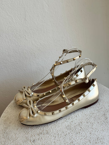 Valentino - Ballerina Ballet Flats - Gold - 39 - new w box RRP$1.050