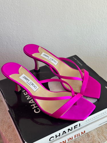 Jimmy Choo - Maelie 70 Satin Kitten Heel Shoes - Fuchsia - 41 - RRP$925