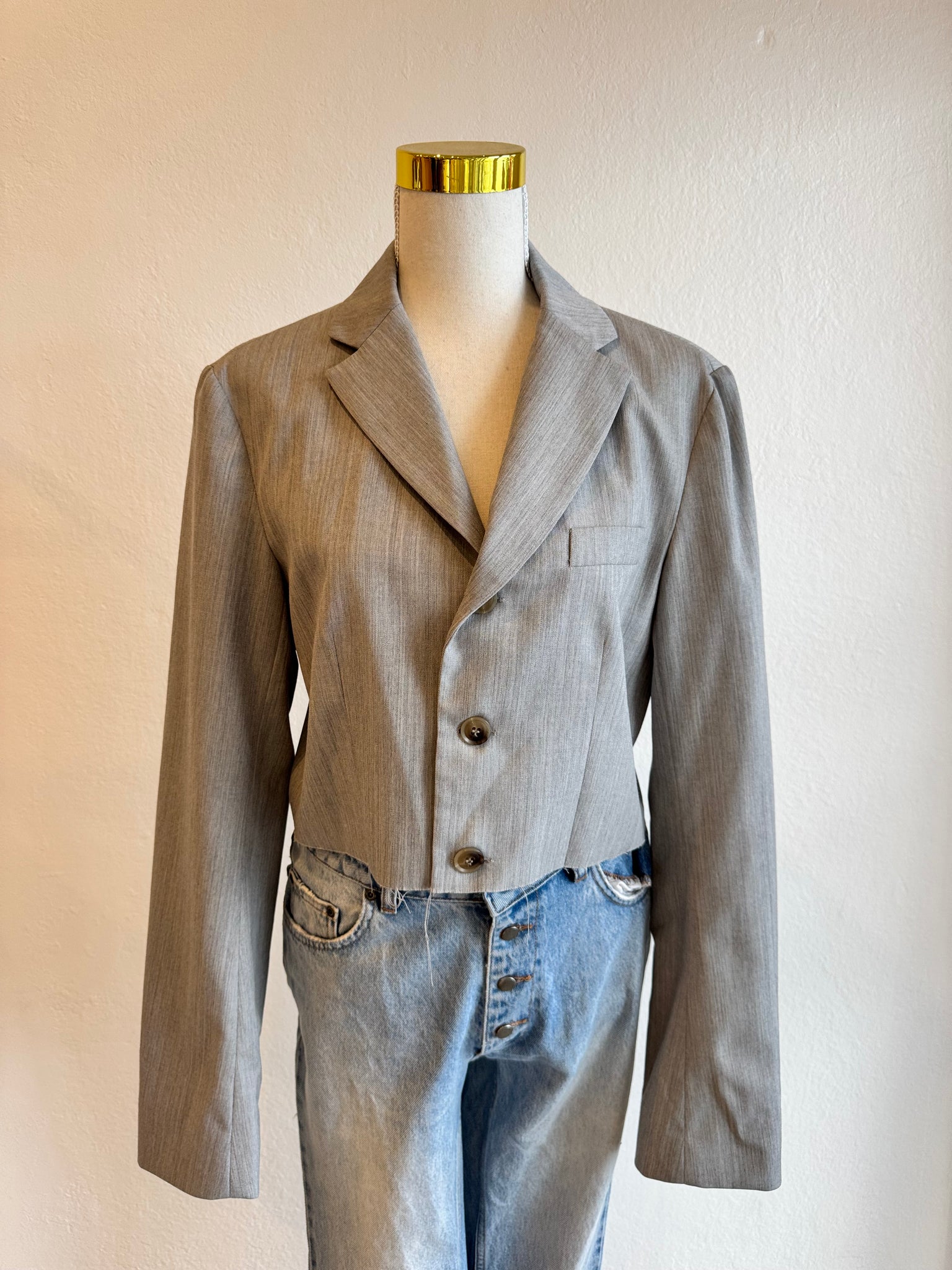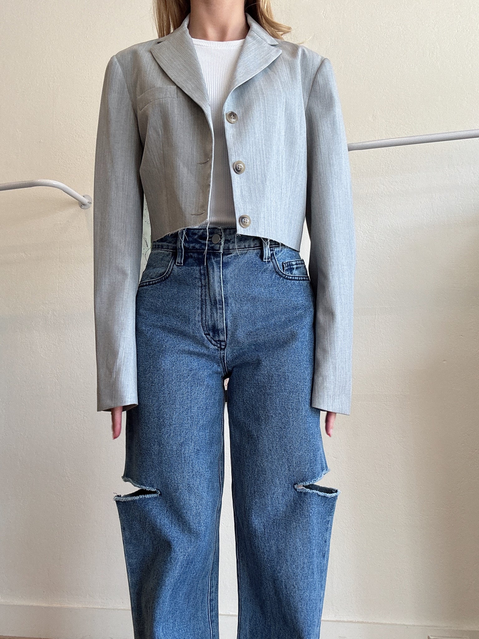 Bassike - Cropped Raw EdgemBlazer - Grey - 2 - RRP$850
