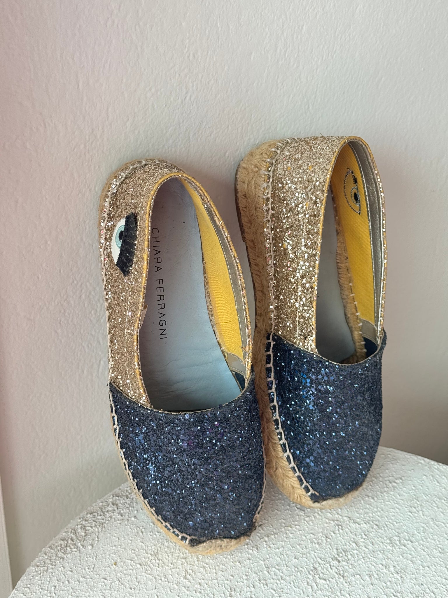 Chiara Ferragni - Flirting Glitter Embellished Espadrilles - Silver/Navy - 37