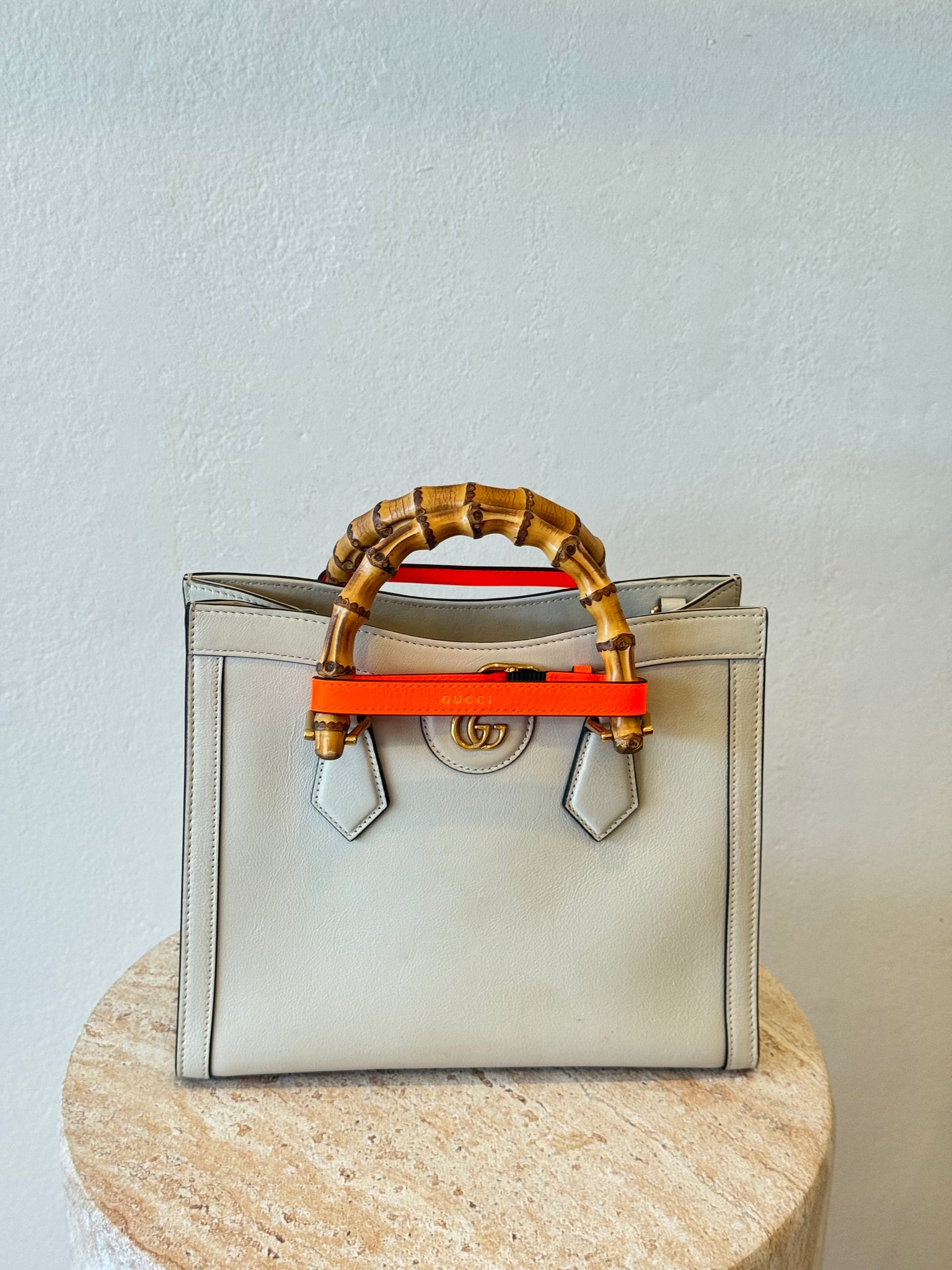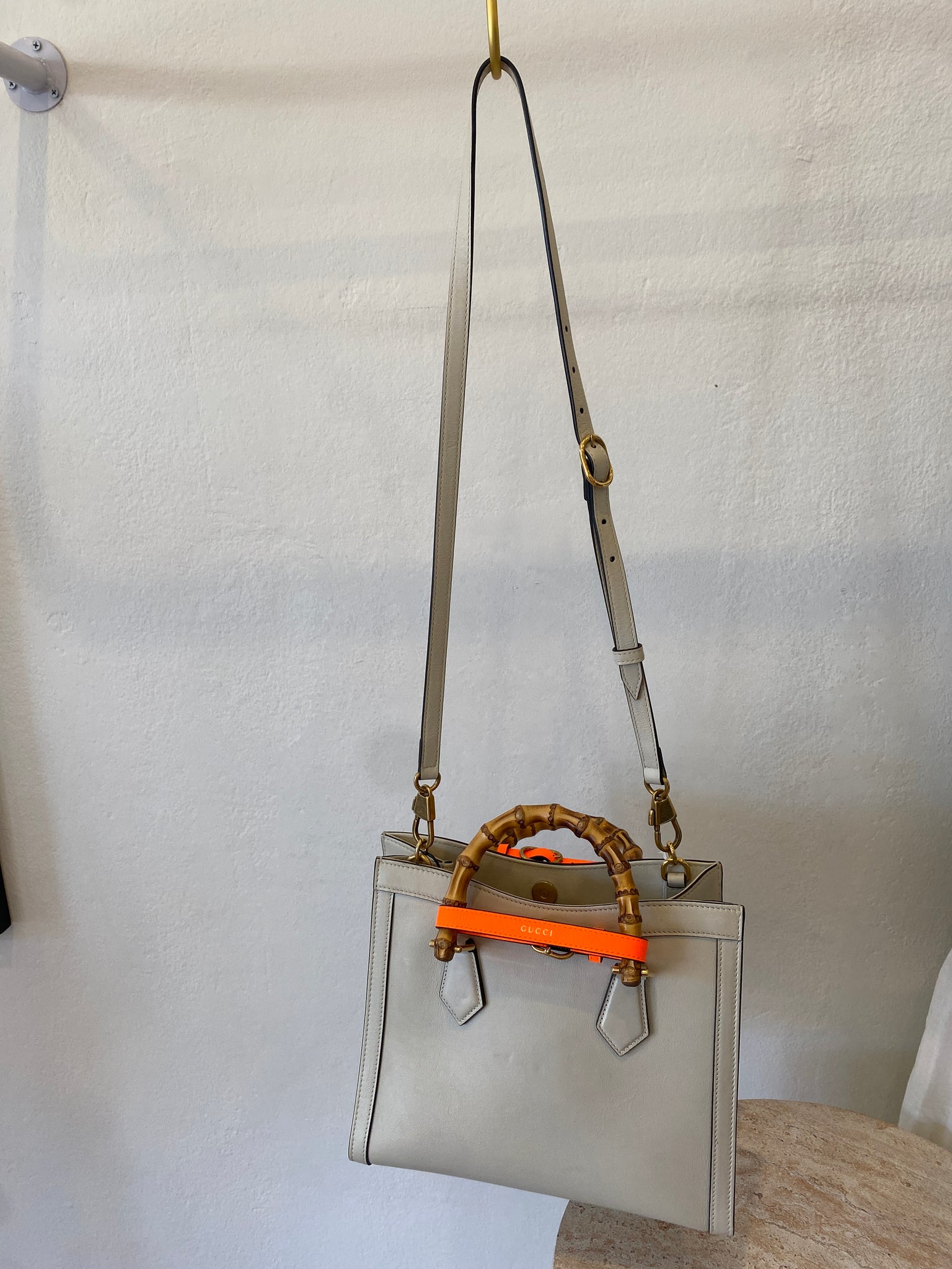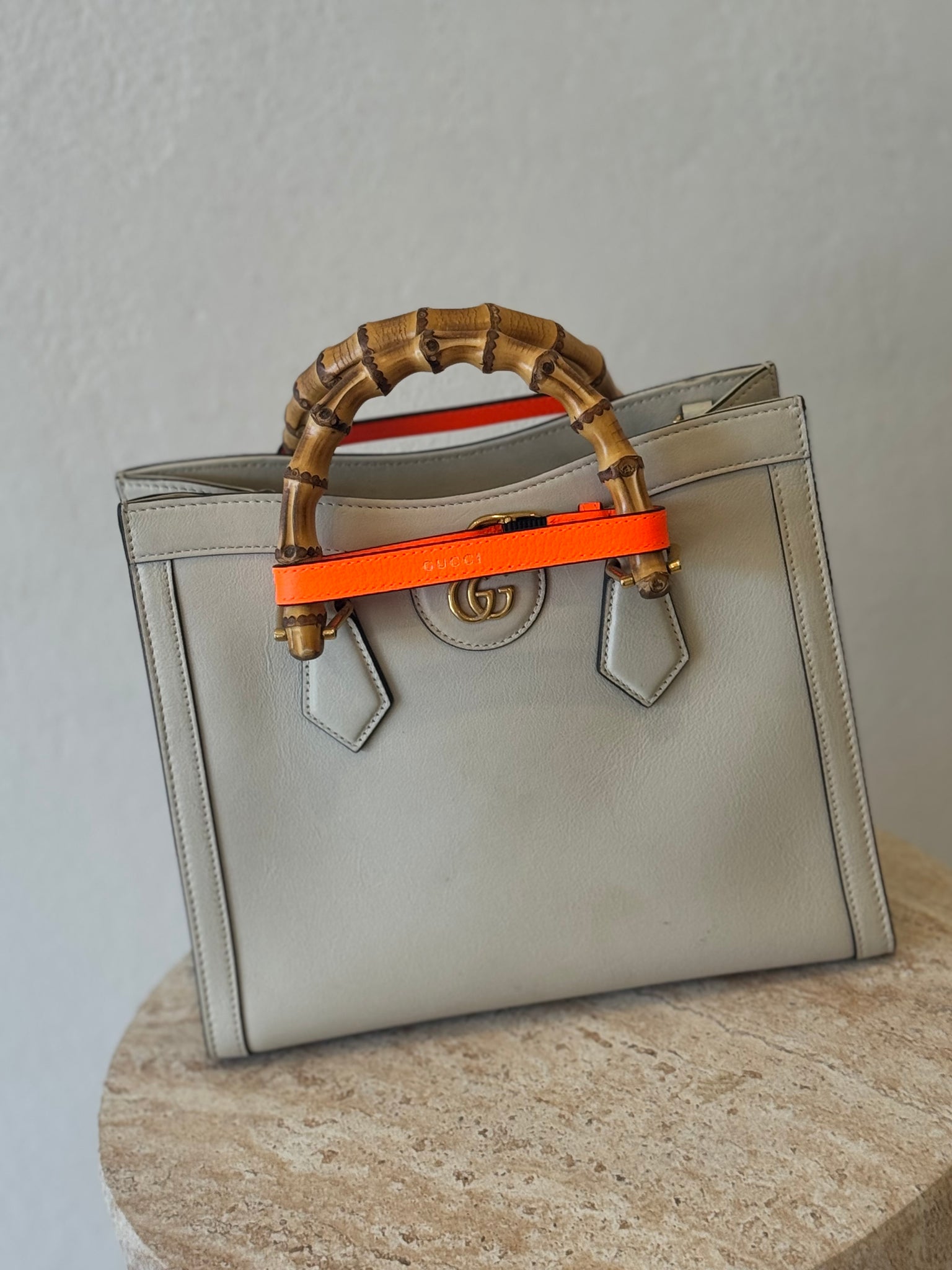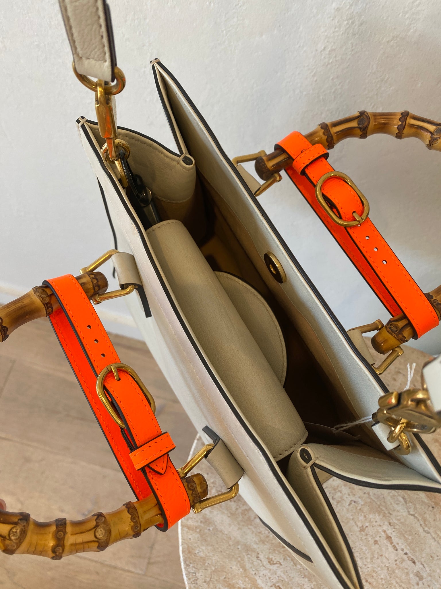 This item comes with 2 decorative belt handle shapers (Neon Orange) and a long leather strap