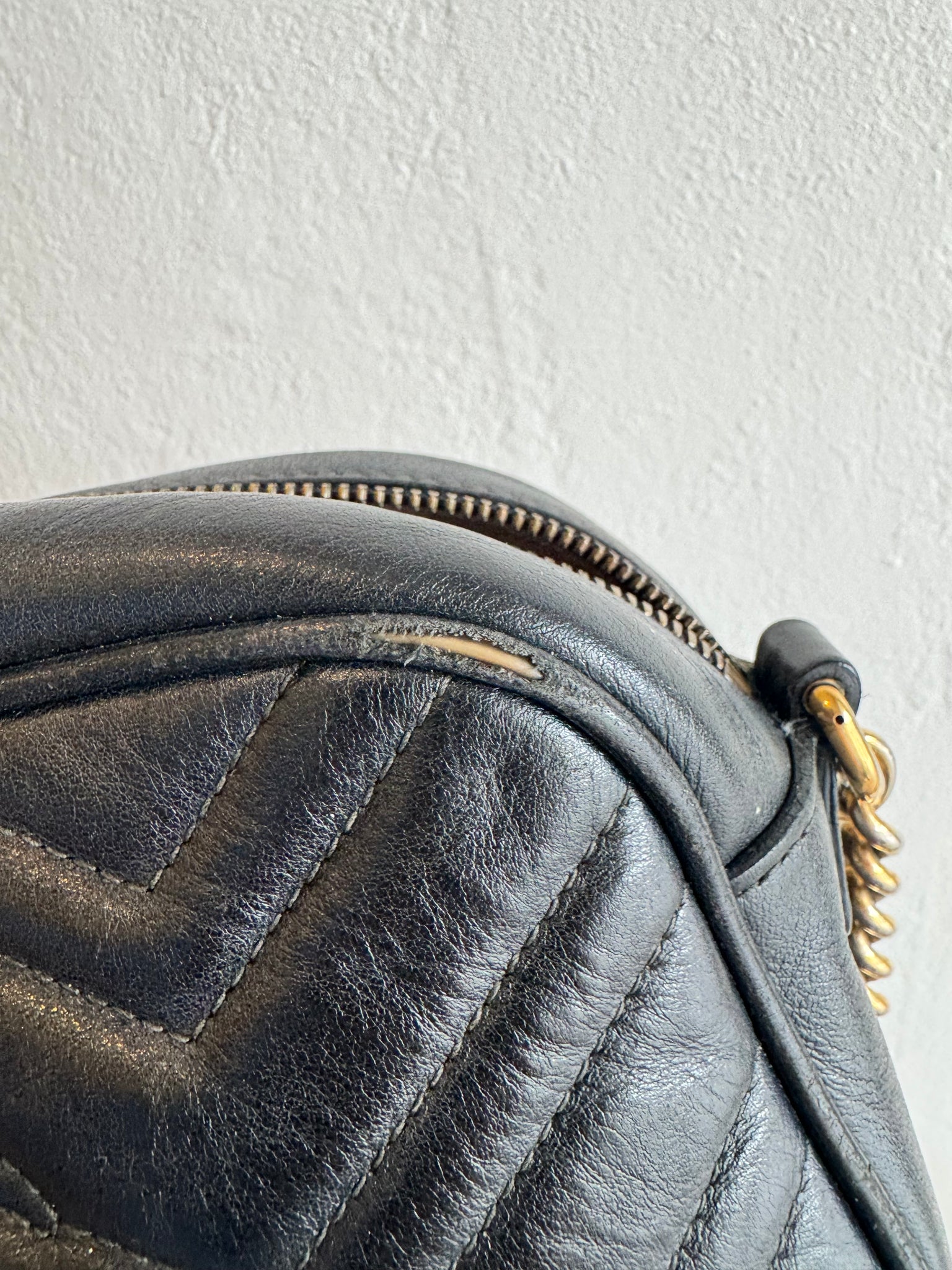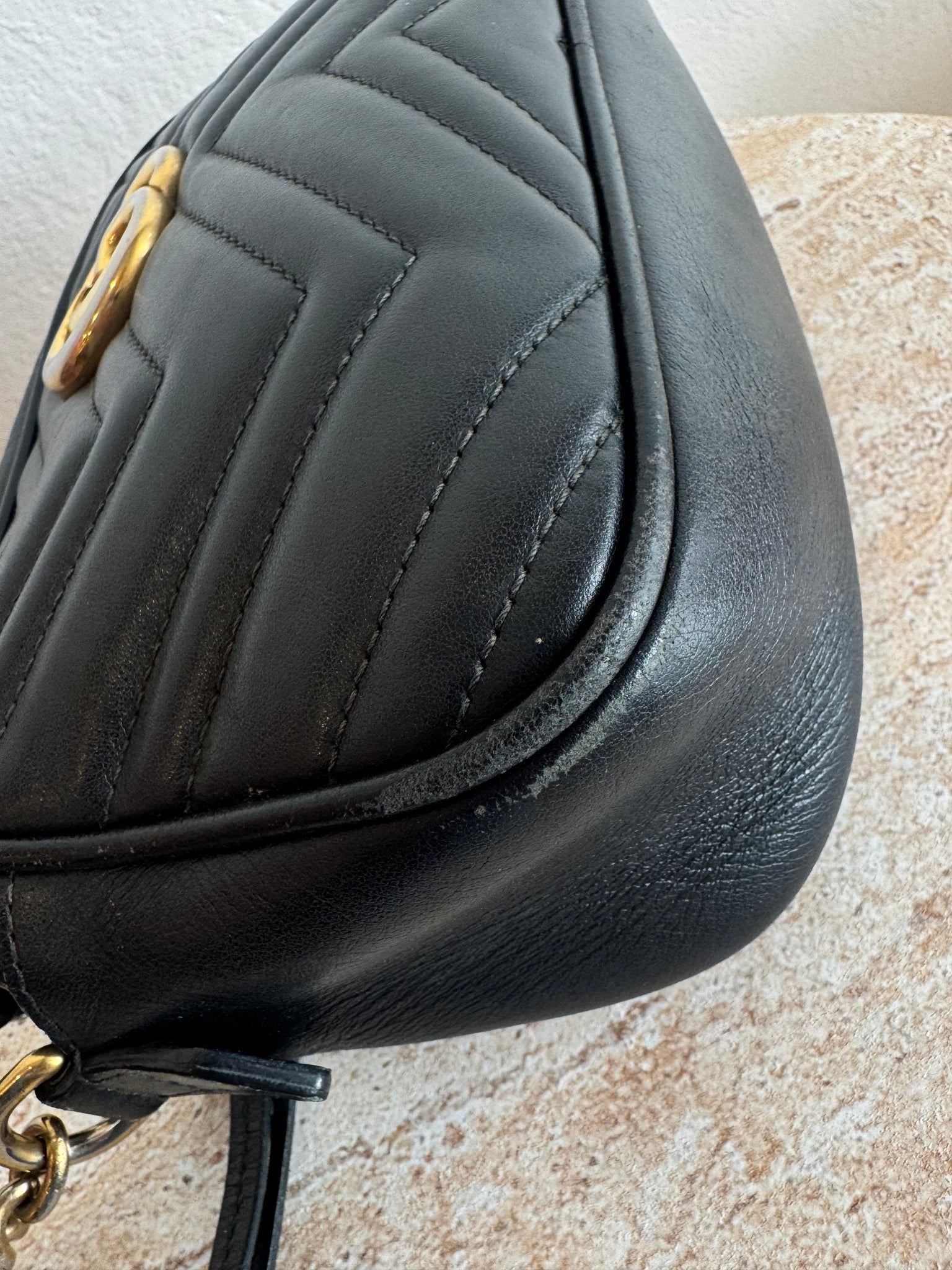 - Black matelassé chevron leather