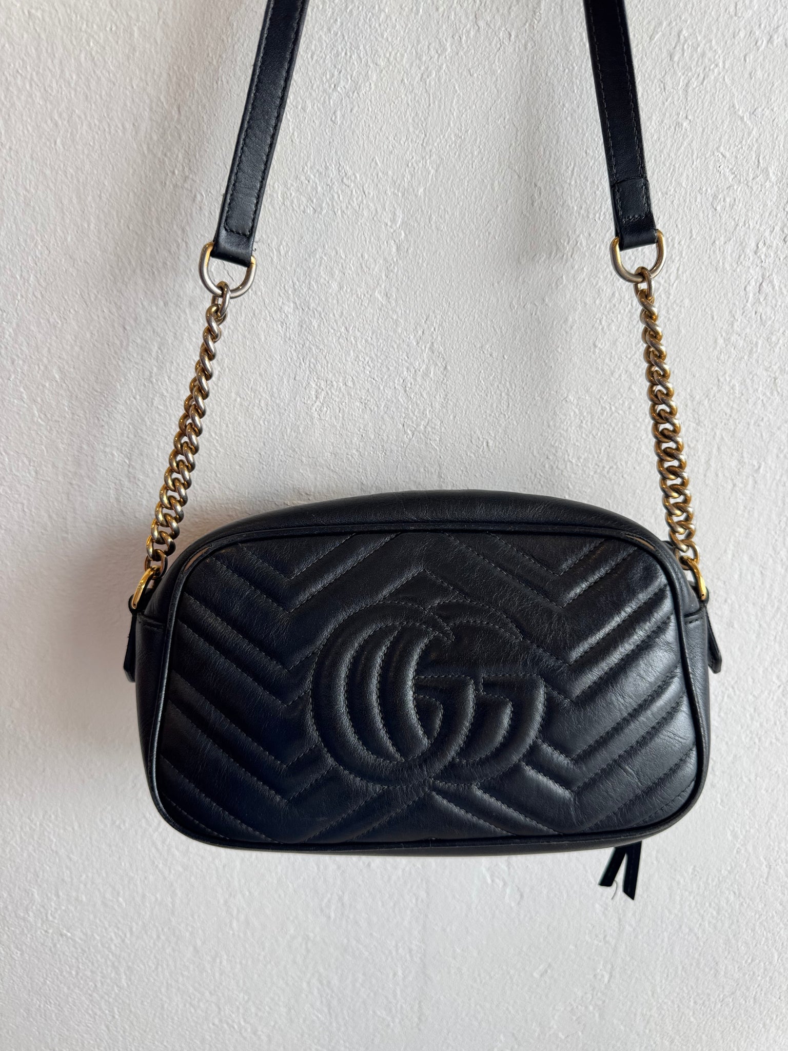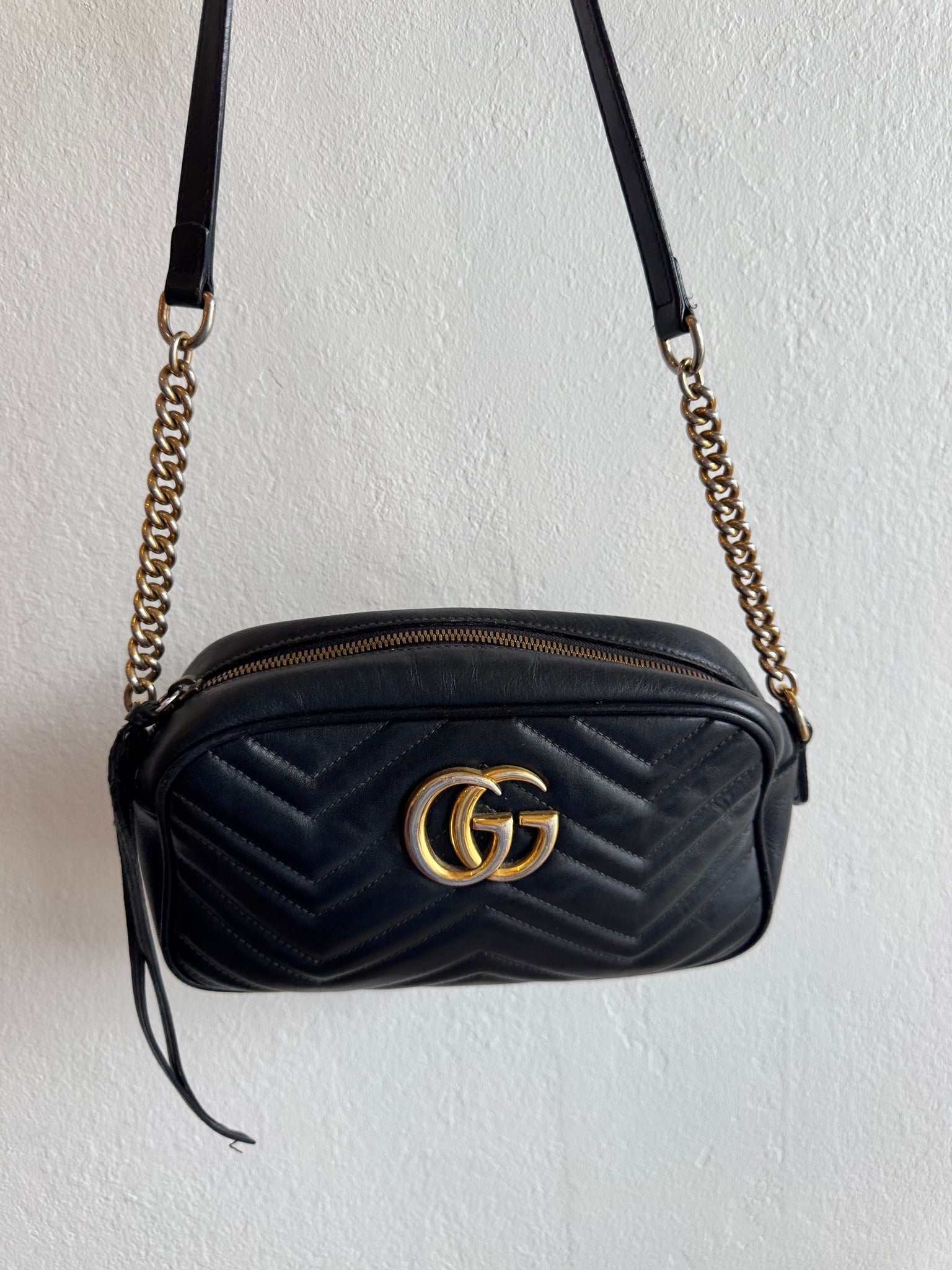 - Adjustable chain shoulder strap with 60cm drop. Can also be worn as a crossbody bag.