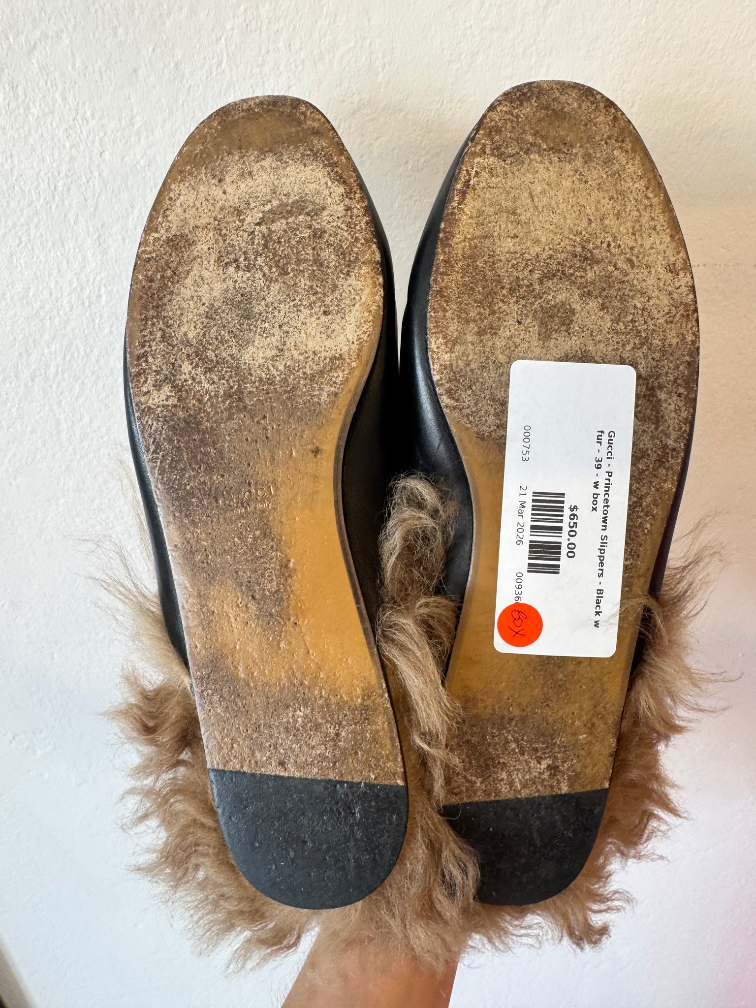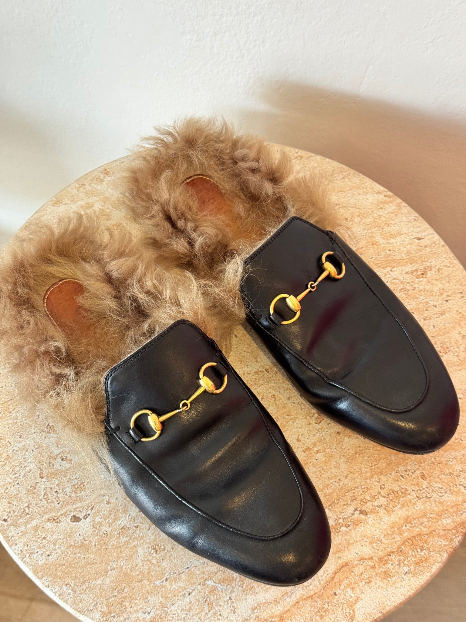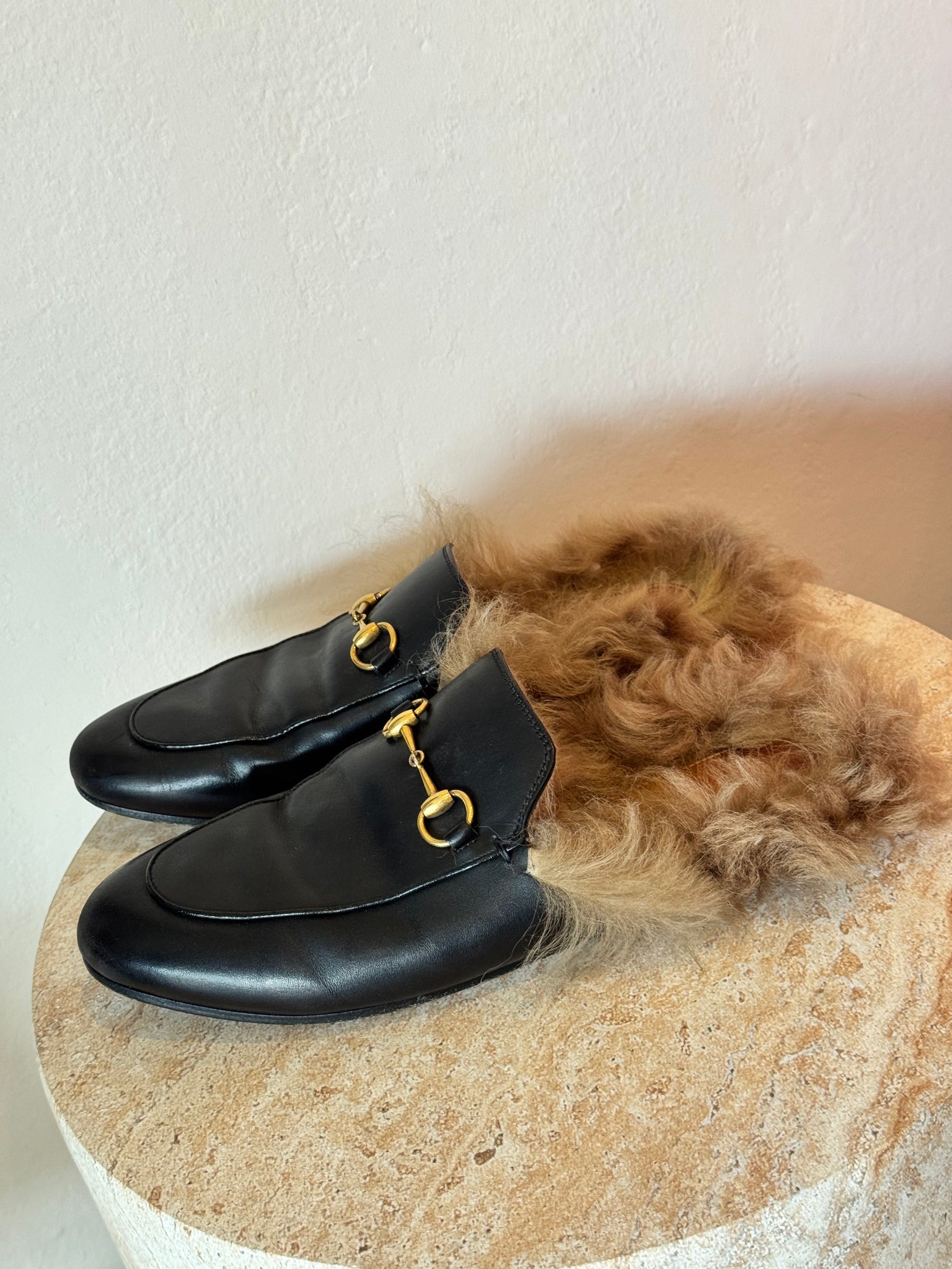 Gucci - Princetown Slippers - Black w fur - 39 - w box