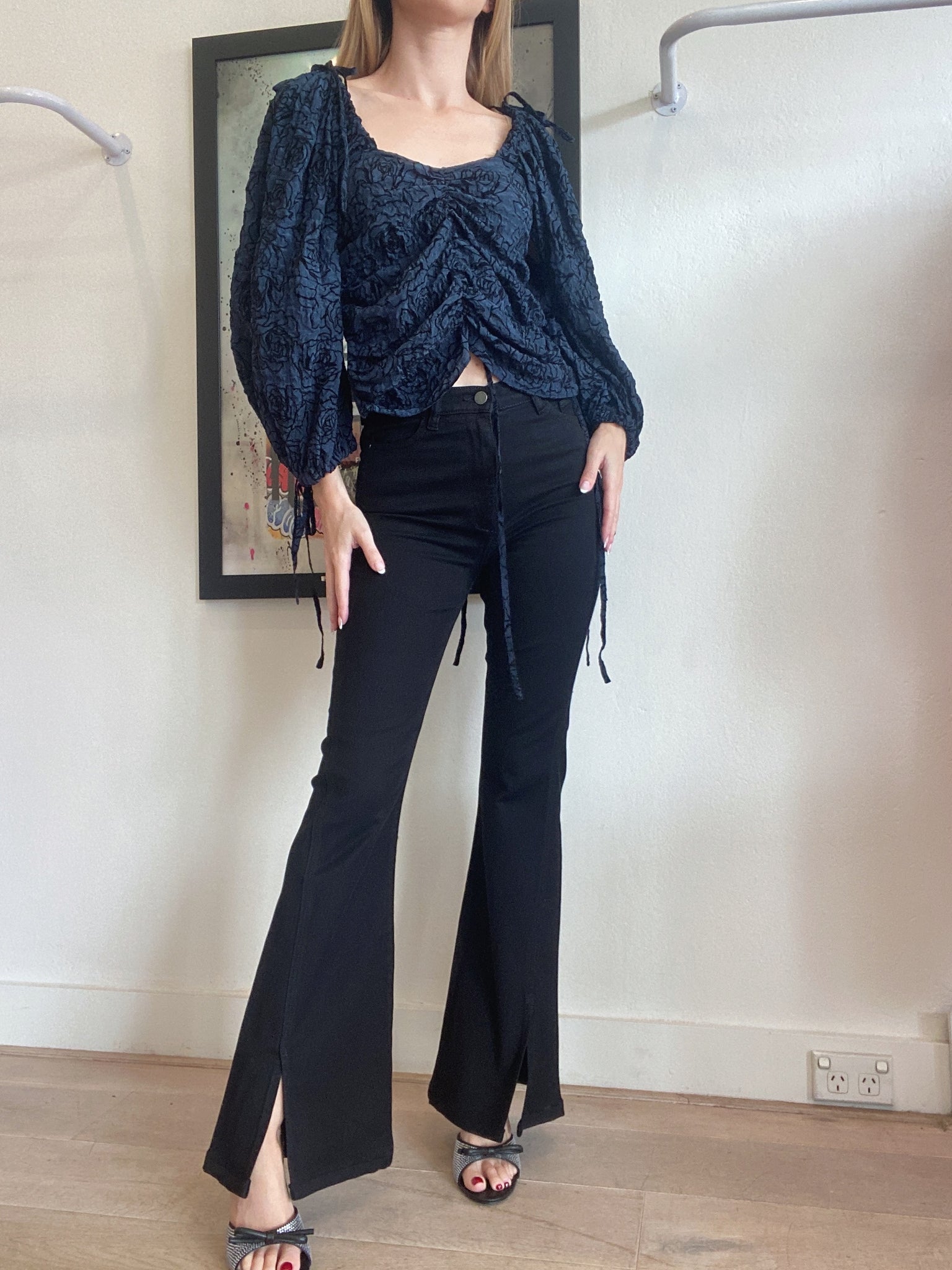 JH Zane - Rose Print Top - Navy - 8
