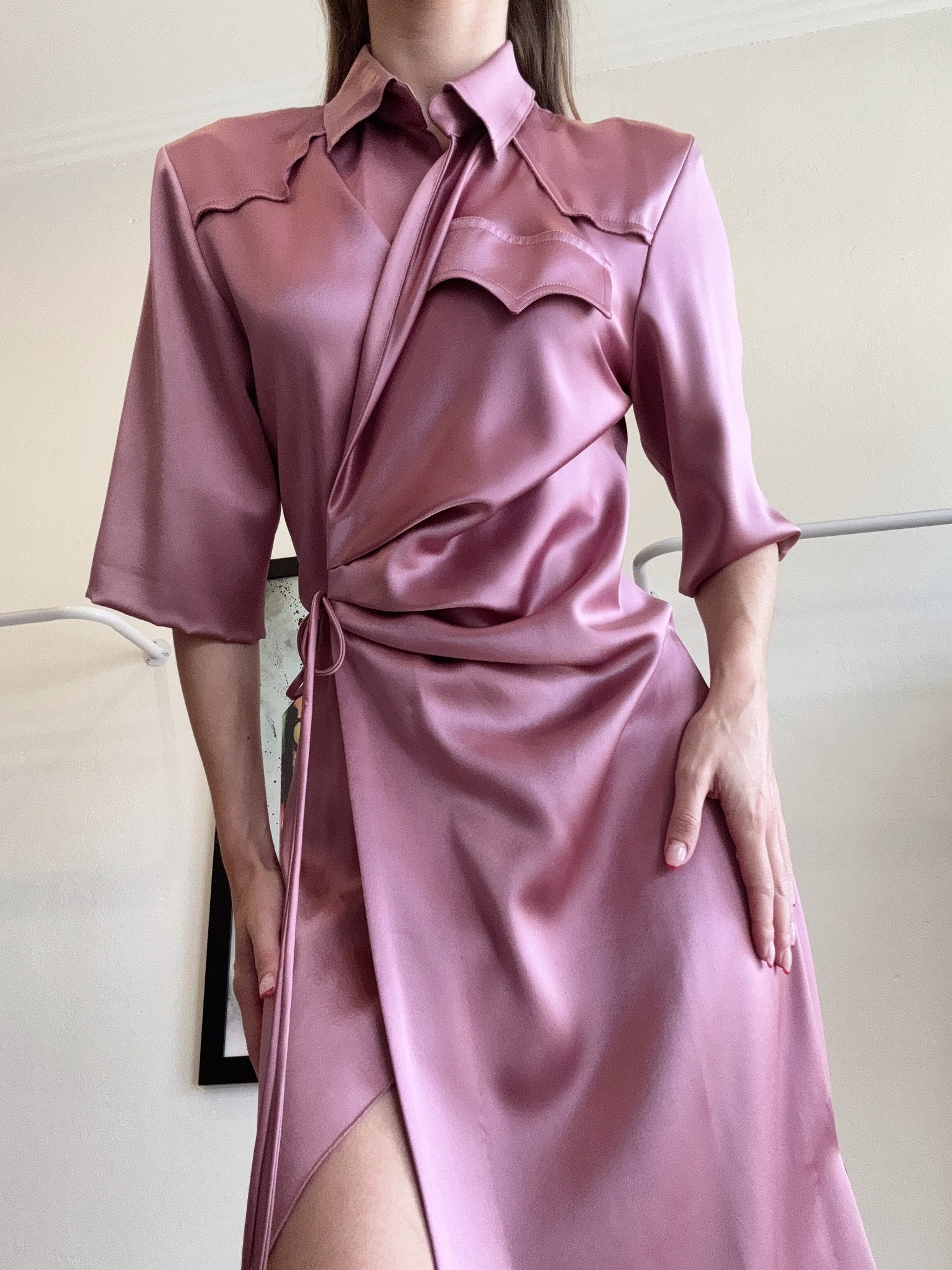 Nanushka - Lias Wrap Satin Midi dress - Blush - XS - RRP$1,100