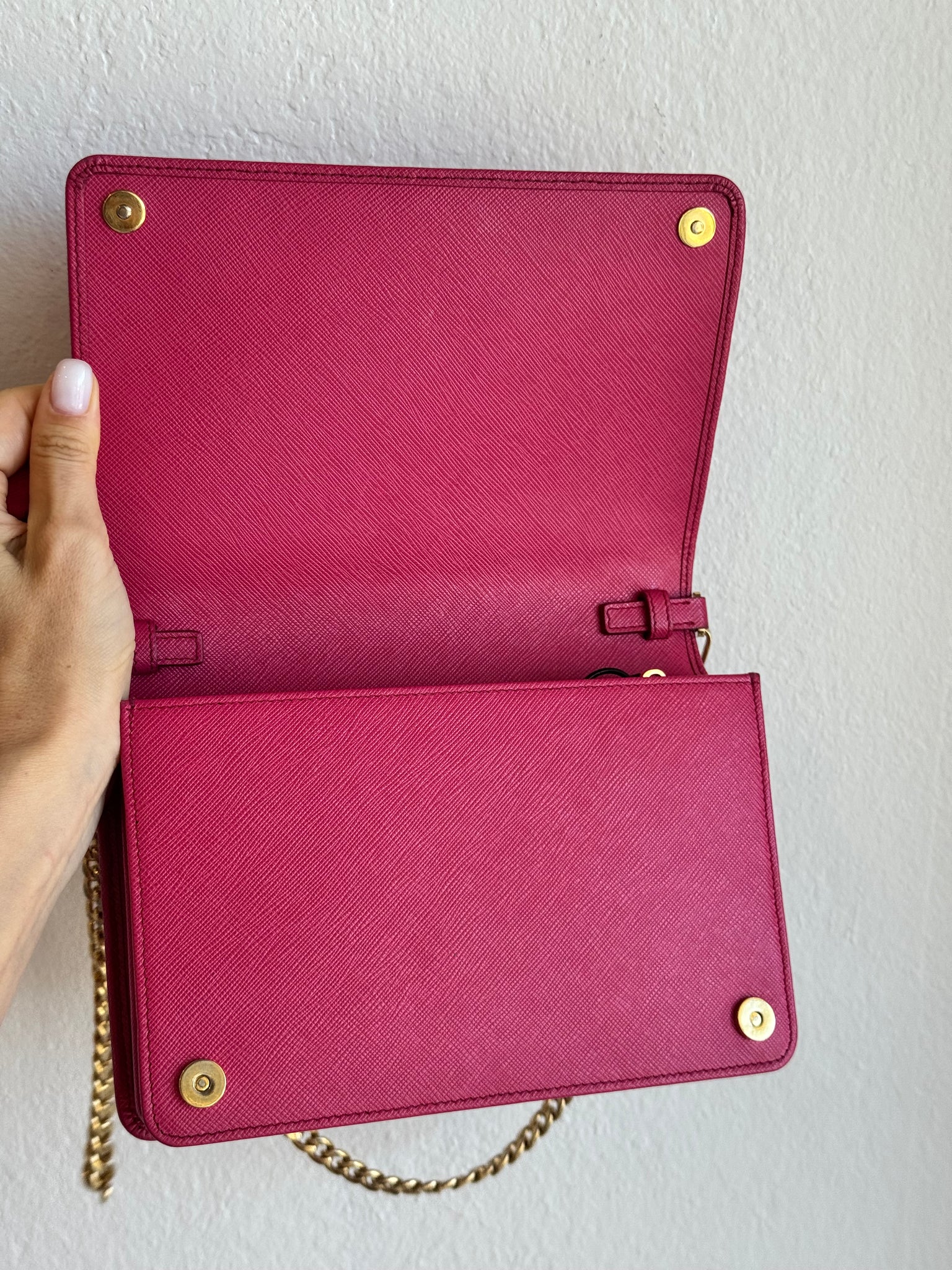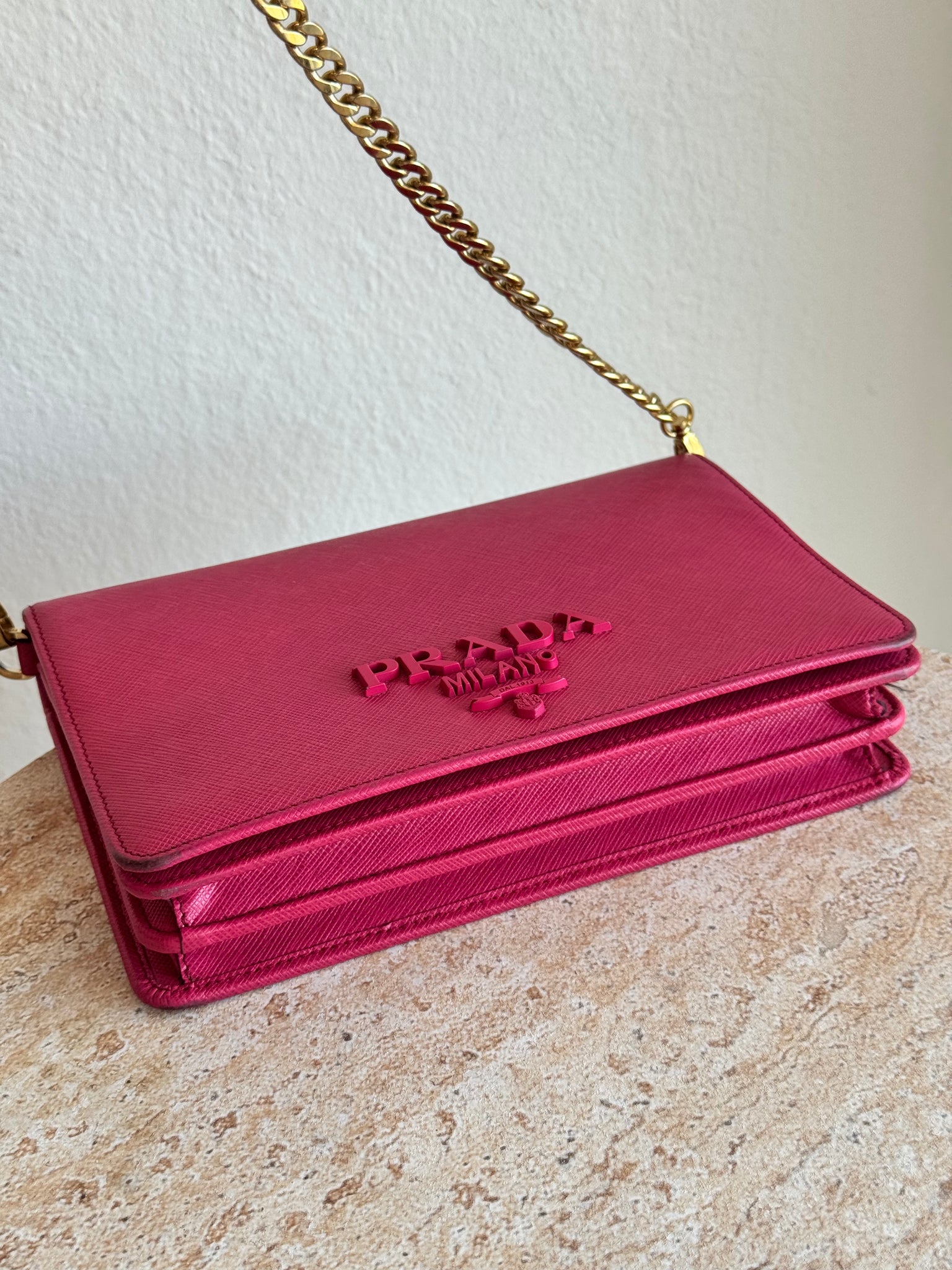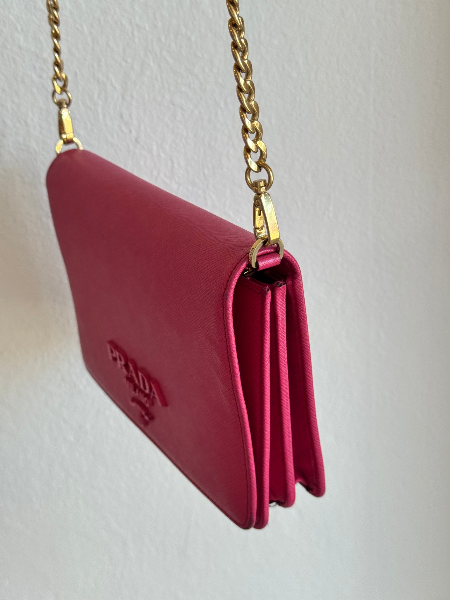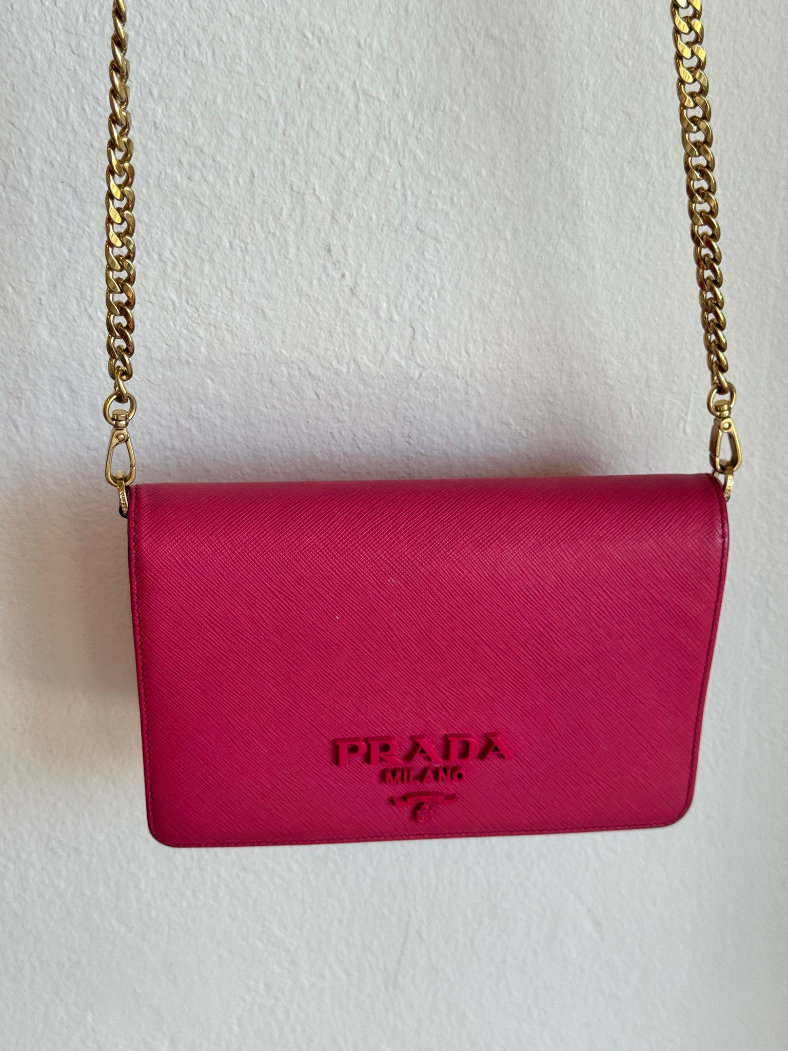 Prada - Mini Saffino Leather Bag on Chain - Pink - S