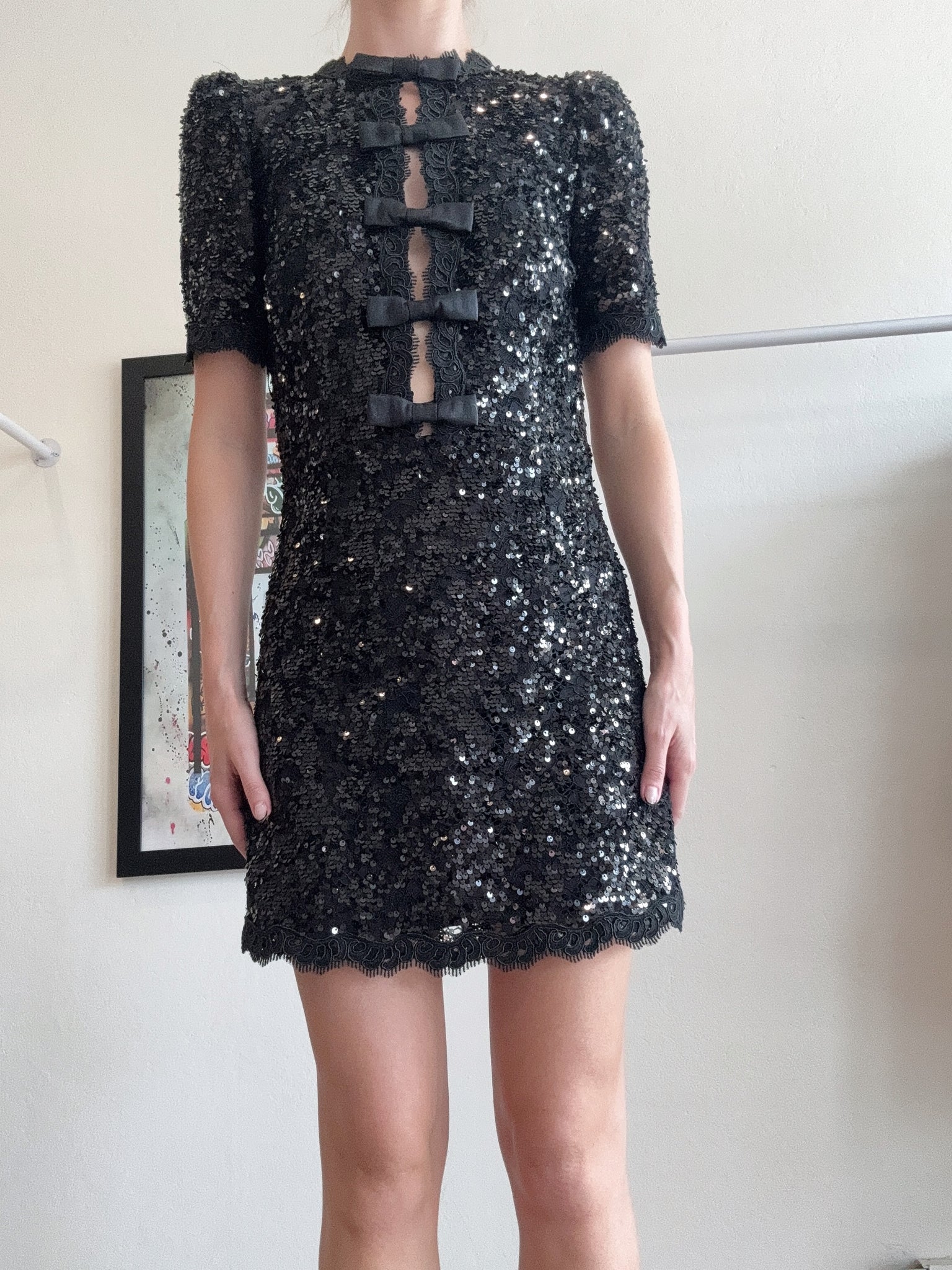 Rebecca Vallance - Diana Bow Mini dress - Black Sequins - 8 - RRP$749