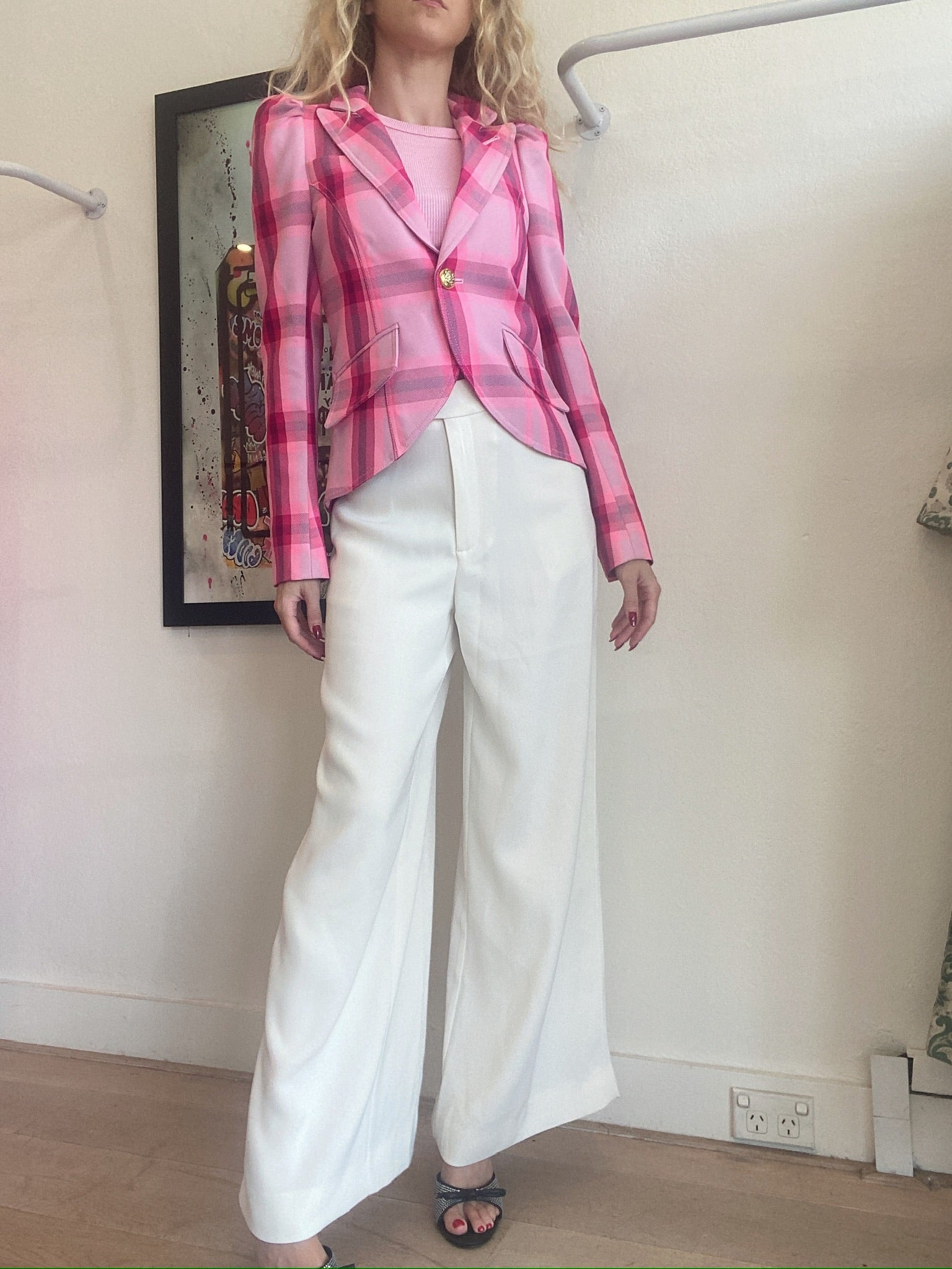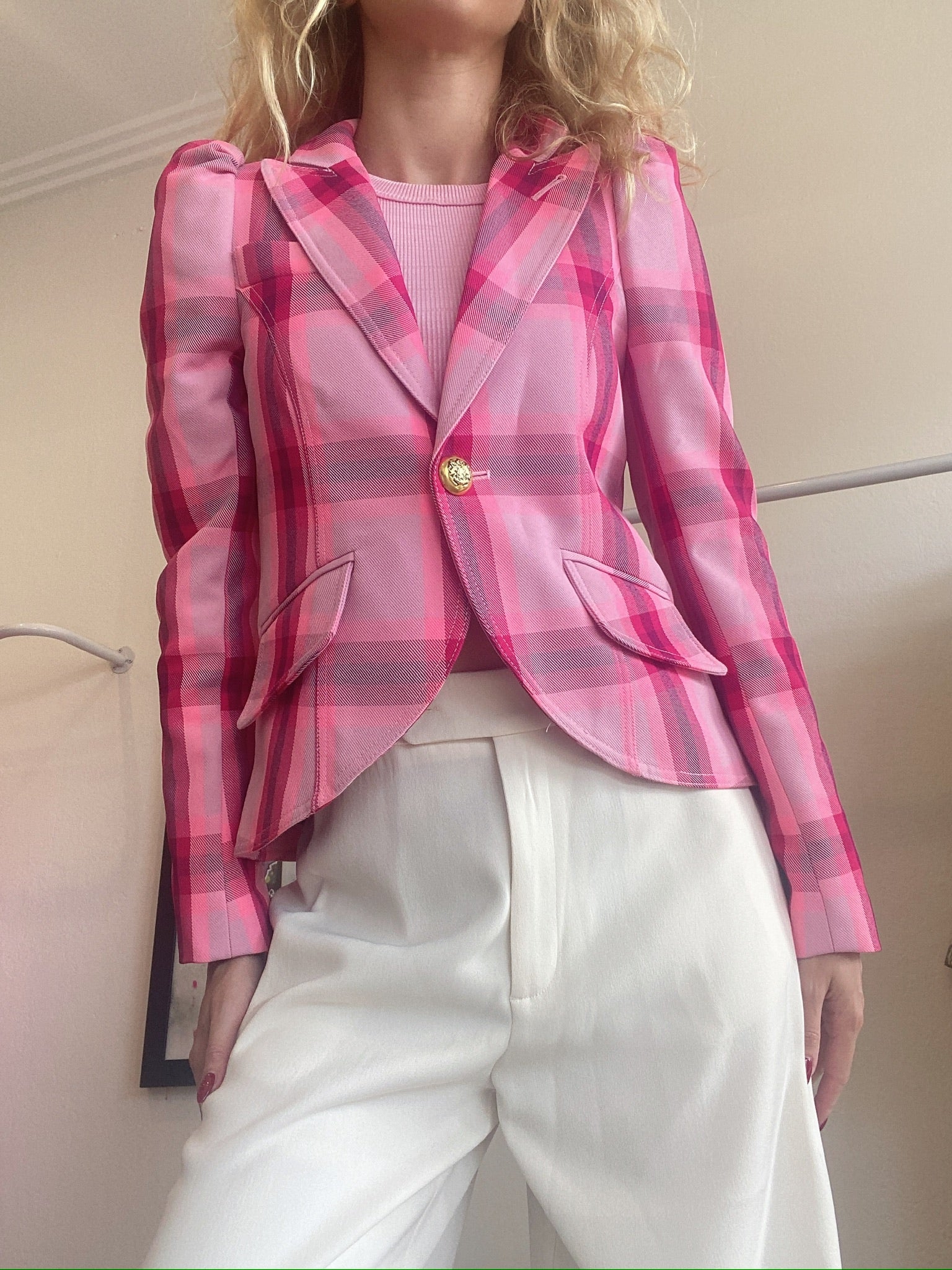Smythe - Blazer Pouf Sleeve One button - Pink check - US4(8) - RRP$1,400