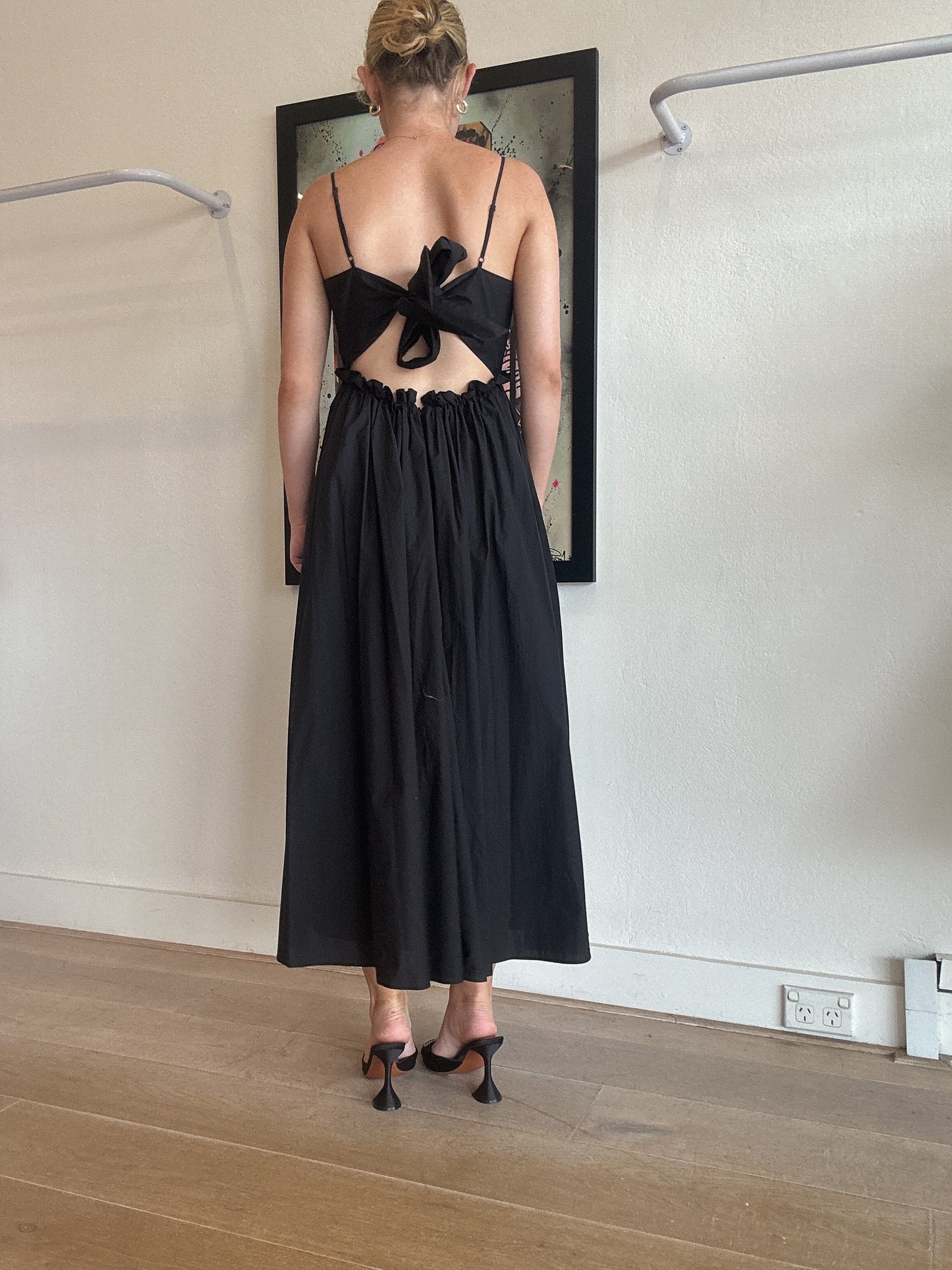 Steele -Cotton Tie Up Midi dress - Black - XS