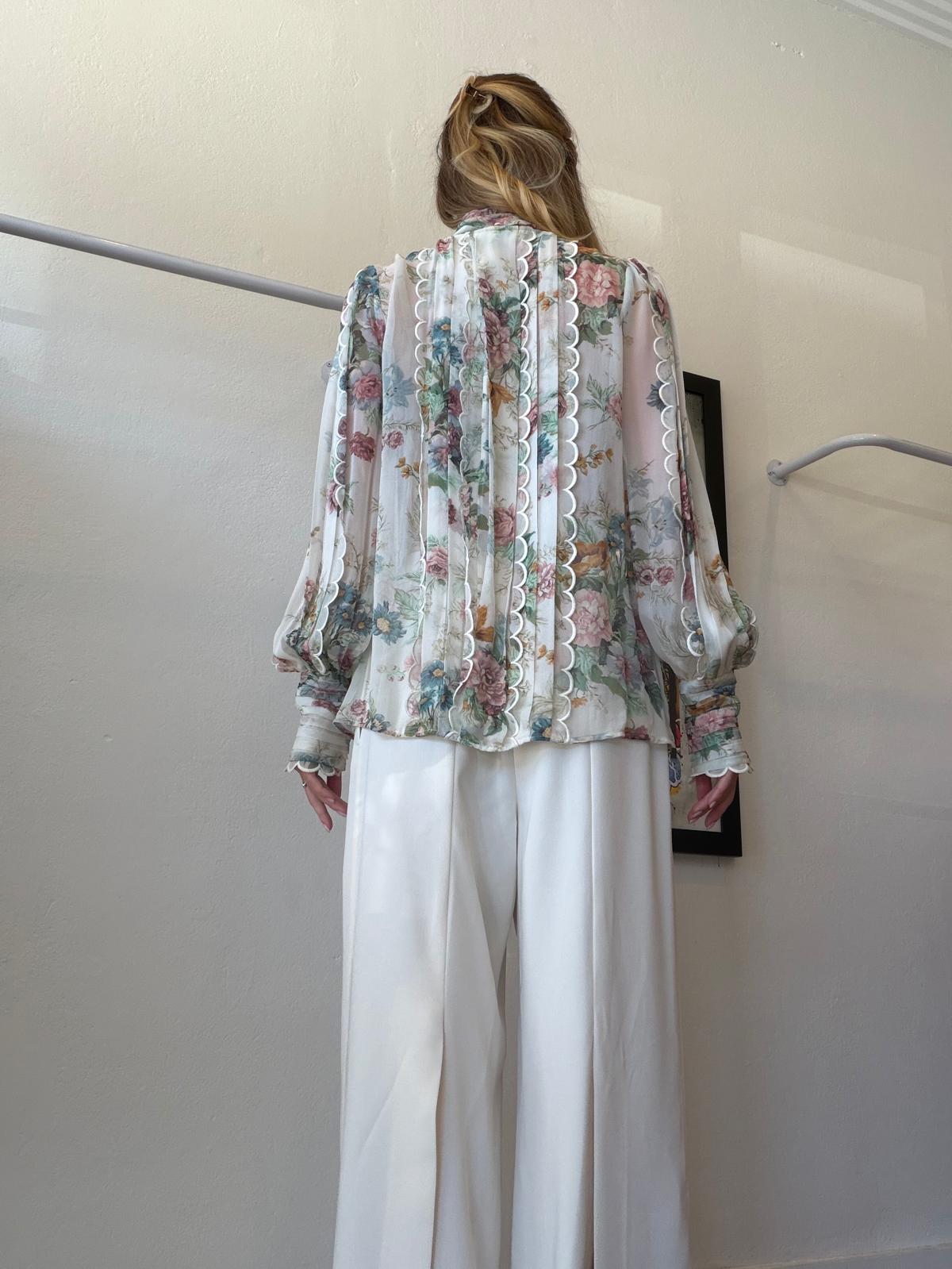 Zimmerman - Wavelength Tie- Neck Floral Print Silk Georgette Blouse - Multi - 1 - RRP$595